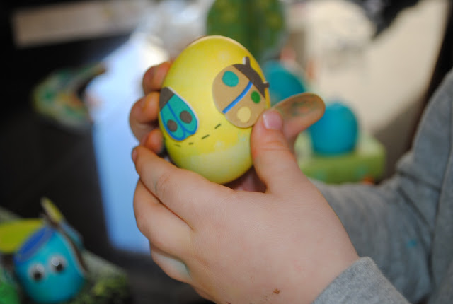 Lakai's kit had all different types of bug wings and googlie eyes to decorate his eggs. Kinley's was full of bunny ears and fuzzy tails. Both the kids were a plethora of color by the end, but we had a blast and can't wait for our next play date!